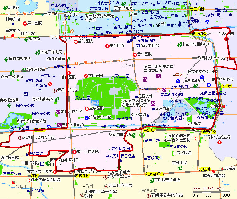 崇文區轄7個街道:前門街道、崇文門外街道、東花市街道、龍潭街道、體育館路街道、天壇街道、永定門外街道。