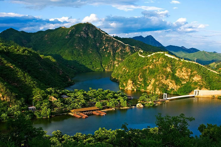 黃花城水長城 黃花城水長城位于九渡河鎮境內,距北京市區65公里,是以奇而著稱,融山川、碧水、古長城為一體的旅游休閑勝地。而這里的“ 三絕景 ”更是引人入勝,嘆為觀止。 “一絕”建于明永樂年間的長城盤旋于山脊之上,環繞在灝明湖畔,景色秀美壯觀。 “二絕”湖水將長城自然斷開,形成長城戲水、水沒長城的奇特景觀。 “三絕”明代板栗園,古樹盤根錯節,形態各異。那巨龍戲珠之軀和撐掩蒼天之冠,令人贊不絕口。 沿古道、過木橋、涉小溪、跨怪石,上行可達黑龍潭。景區還有龍尾洞、紫翠峰、醉女山、石浪谷、情人峰、三珠連潭等自然景觀。 地名由來 因鎮域中部最大村名九渡河而得名。 地方特產 九渡河鎮為懷柔區板栗、核桃生產基地之一,另有梨、蘋果、柿子、紅果等。 |