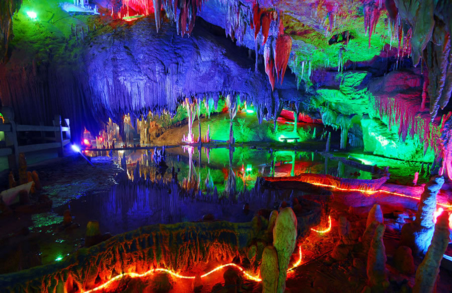 梅山龍宮景區,位于湖南省婁底市新化縣油溪鄉高橋村,地處湖南最大山脈雪峰山《古稱梅山》的腹地,湖南省新瀟湘八景景區、首屆湖南大眾最愛旅游目的地。梅山龍宮是一個集溶洞、峽谷、峰林、絕壁、溪河、漏斗、暗河等多種喀斯特地質地貌景觀于一體的大型溶洞群,有九層洞穴,探明長度2870余米,已開發游覽路線1896米,其中包括長466米世界罕見的神秘地下河。整個洞府分為龍宮迎賓、碧水蓮宮、玉皇天宮、龍宮仙苑、龍宮風情、龍鳳呈祥六大景區。