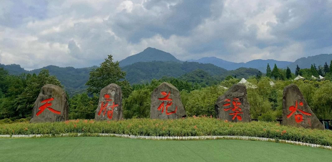 天府花溪谷位于四川省成都市大邑縣金星鄉和平村,海拔900米至1300米,距成都市區70公里,與正在建設的成都第二水源地李家巖水庫僅隔1.5公里。景區森林覆蓋率93%,負氧離子含量3500~17000個/cm3,堪稱“洗肺之谷”;夏季平均氣溫低于成都市區8℃-10℃。天府花溪谷項目總規劃面積為3萬畝,2017年已建成2000畝花溪谷山地主題運動花園區,花卉觀賞面積達到800余畝。山谷主打以山地戶外運動為主,建設有二十余種山地戶外運動體驗設施:適合喜歡挑戰極限人群的項目有:高空溜索、懸崖秋千、玻璃吊橋、叢林穿越等;適合親子家庭的無動力攀爬樂園、碰碰車、海盜船等;近期還將擴展各種高空項目、水上項目等。山谷根據季節不同,打造特色主題花卉景觀,春季以觀賞郁金香、杜鵑海棠為主,夏季以繡球、月季、馬鞭草花海為主;秋季以觀賞紅楓、百合花海為主;正在建設的奇石溫泉酒店將成為天府花溪谷景區冬季的主打產品。