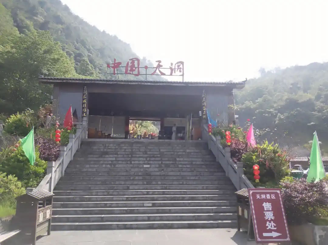 - 特色:景區核心溶洞,全長2.8公里,洞內遍布千奇百怪的鐘乳石、石筍和石崖等自然景觀,分為五個洞廳(天道廳、天街廳、天宮廳、天佛廳、天恩廳)。
