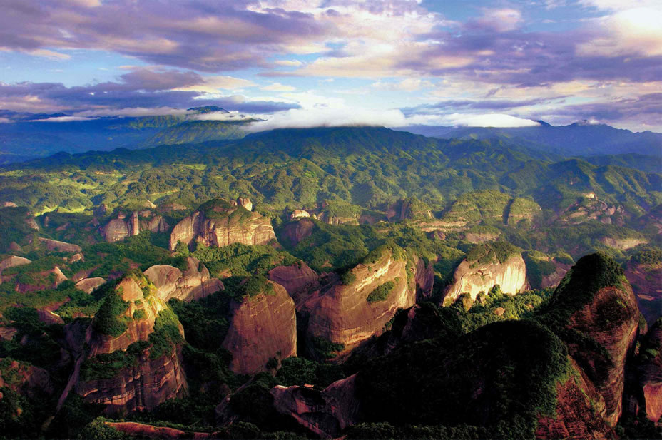 桂林八角寨景區又名云臺山、資源八角寨,位于廣西資源縣梅溪鎮大坨村,地處五嶺山脈里最長者越城嶺山脈腹地區域的西北側余脈。主峰海拔818米,因主峰有八個翹角而得名。其發育豐富程度及品位世界罕見,被有關專家譽為“丹霞之魂、國家瑰寶 ”,“中國最美的七大丹霞”之一。從山底仰望八角寨,昂首挺立的山峰分八扇伸向八方,俗稱八個龍頭。山頂上面存有建于明代的云臺寺遺址。