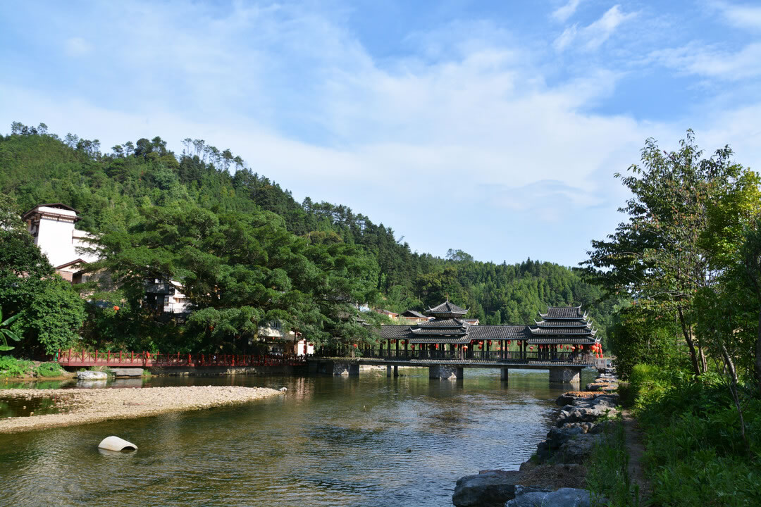 - 上午:游客中心→風雨橋→瑤繡館體驗→天鵝湖游船