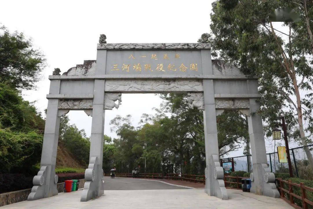 “八一”起義軍三河壩戰役紀念園位于三河鎮匯東村筆枝山頂,占地面積18萬平方米,為全國重點烈士紀念建筑物保護單位、廣東省文物保護單位、梅州市和大埔縣愛國主義教育基地,內有"八一"起義軍三河壩戰役烈士紀念碑、"八一"起義軍三河壩戰役紀念館、朱德雕塑、浮雕墻、門樓、長廊、花架、涼亭等。