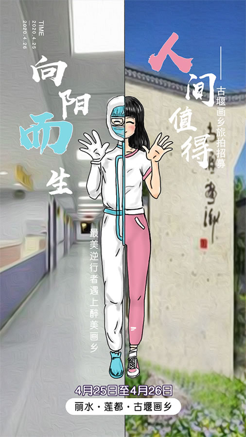 致敬抗疫英雄,讓歷史銘記。關愛醫護人員,展人間真情。為鳴謝全國所有醫護人員,特別是在抗疫一線的醫護人員為了人民群眾的平安健康所做出的巨大貢獻,麗水市蓮都區旅游投資發展有限公司發起了“最美逆行者遇上最美畫鄉”古堰畫鄉旅拍招募活動。