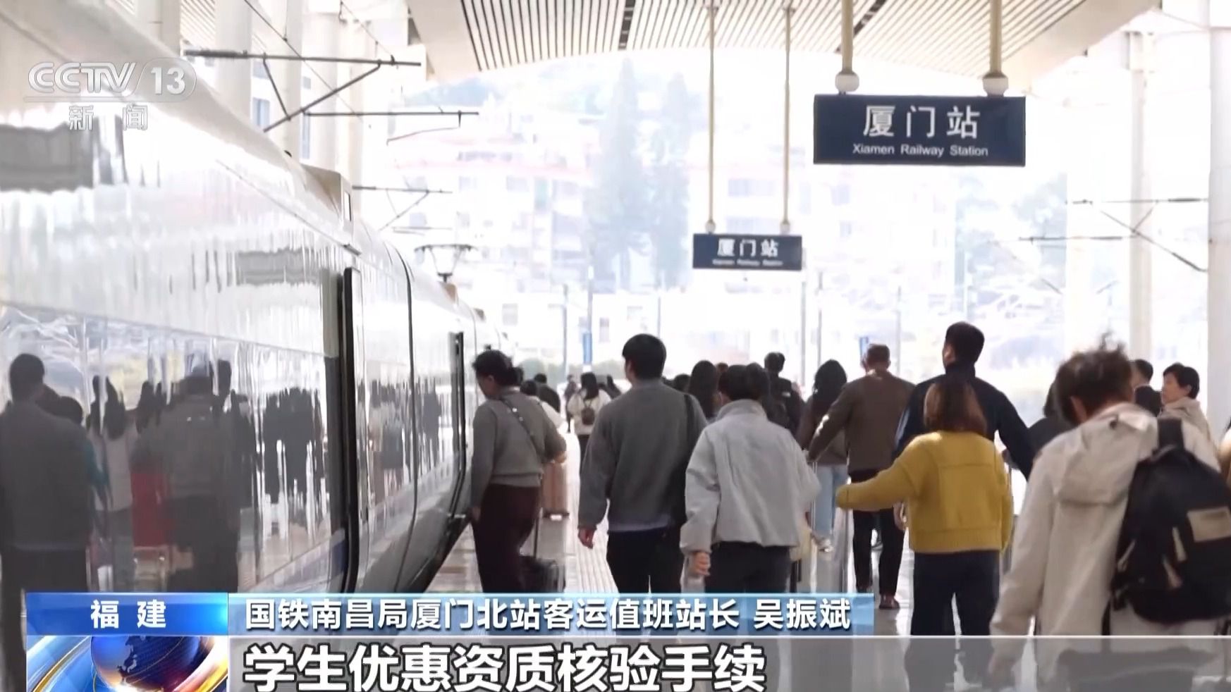 國鐵南昌局廈門北站客運值班站長 吳振斌:現在中國高等教育學生信息網和鐵路12306系統已實現信息對接,學生旅客每學年乘車前可通過鐵路12306App在線辦理學生優惠資質核驗手續。