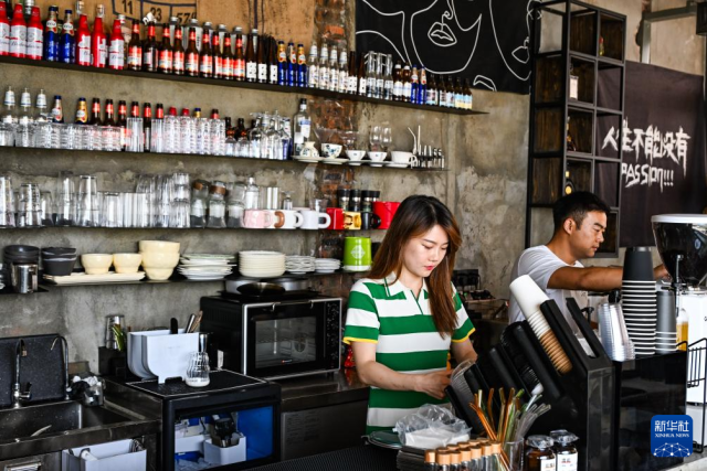 6月11日,重慶巫山一飲品店工作人員在調制飲品。