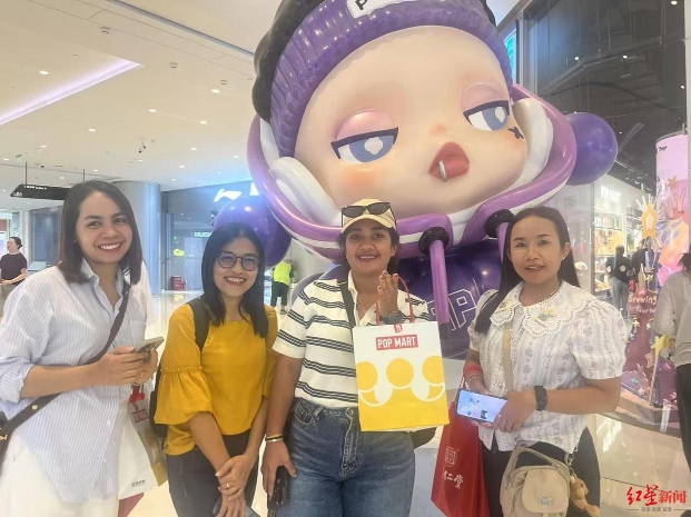 6月25日,泰國游客蒂皮(Tipphy)和三個朋友正在成都購物。接下來,蒂皮和朋友們將在成都停留四天,感受都市生活,“這次來四川,我們?nèi)チ水吪餃稀⑺墓媚锷胶途耪瘻希L(fēng)景都特別漂亮,天氣也很涼爽。”
