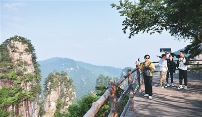 韓國游客在湖南張家界國家森林公園黃石寨景區游覽。