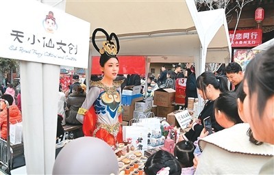游客在甘肅天水“天水麻辣燙吃貨節”現場選購文創產品。