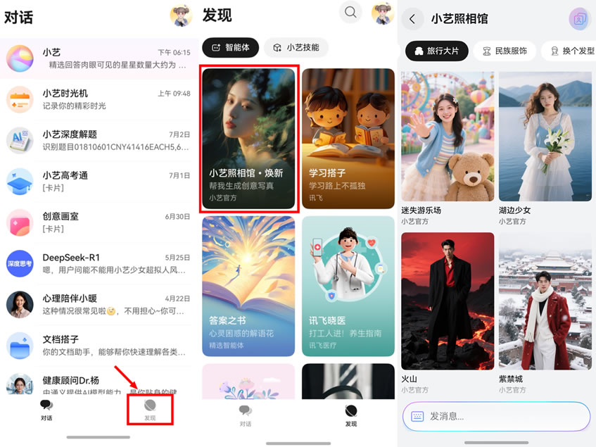 如果沒拍到滿意的照片也沒關系,在小藝照相館找回遺失的美好。進入小藝App的發現頁,在智能體市場找到小藝照相館Agent,挑選自己喜歡的模板并上傳照片,即刻生成藝術風格類寫真,實現像素級面部特征遷移,效果堪比專業攝影棚精修大片。