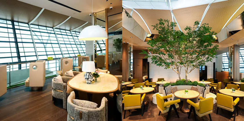 本次合作聚焦多元場景,以更精細化服務不斷延展旅程體驗的深度與廣度。聯名貴賓廳空間設計以“花園綠洲”為靈感,融合洲際酒店集團的典雅格調與海南航空“夢之羽”視覺元素,打造兼具現代功能與東方韻味的空間。整體空間布局有序,前區設有布菲島臺、自助取餐區及互動烹飪區,使烹飪過程轉化為空間內的互動亮點;后區則設有用餐與舒適的休息區域,兼顧私密性與景觀體驗,為賓客營造靜謐舒適的候機氛圍。貴賓廳中央融合酒店式的“后花園”空間理念,將酒店體驗延伸至機場貴賓廳,豐富空間層次與使用感受。此外,該聯名貴賓廳亦突破航司邊界,將面向洲際優悅會鉆石卡精英會員開放禮遇。