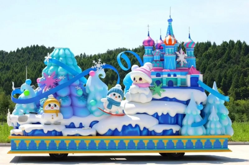 “冰雪綺夢花車”,巧妙融合了伊春作為“紅松故鄉”的生態特色與對俄開放的地緣優勢。銀裝素裹的紅松林展現北國冰雪魅力,俄羅斯城堡造型呼應伊春作為中俄邊境城市的開放姿態。雪人點綴其間營造歡樂氛圍,底部藍色水系裝飾象征黑龍江流域的聯通作用。花車通過冰雪童話場景,既展示了伊春冬季旅游的獨特吸引力,更傳遞出“以冰雪為媒,促開放合作”的發展理念,生動詮釋了伊春立足生態優勢、深化對外合作、推動高質量發展的戰略方向,誠邀八方賓客共赴冰雪之約、共享開放機遇。