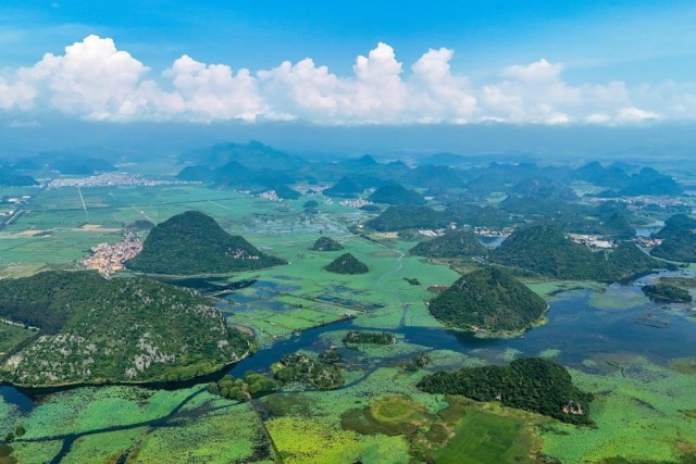 7月16日拍攝的普者黑景區風光(無人機照片)。新華社記者 彭奕凱 攝