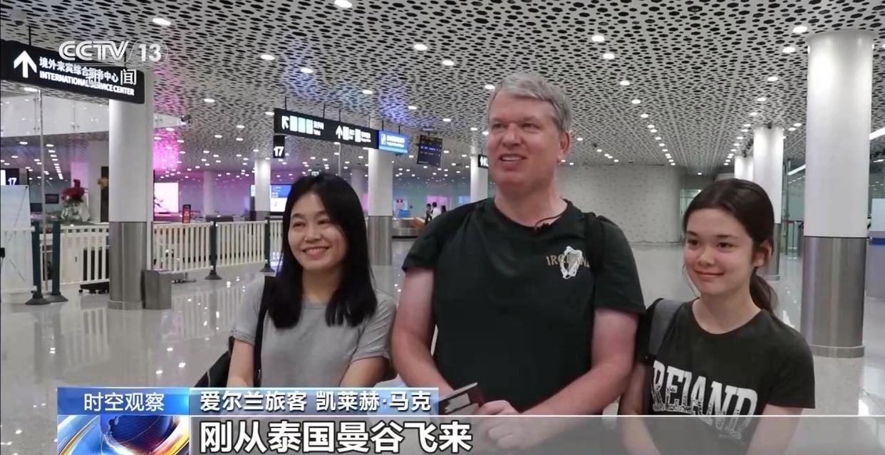 愛爾蘭旅客 凱萊赫·馬克:我們是一家人,剛從泰國曼谷飛來。中國的免簽政策對我的妻子和女兒非常方便。我們非常開心可以來深圳,這是一座國際化的城市,我們已經迫不及待地想住在這里了。