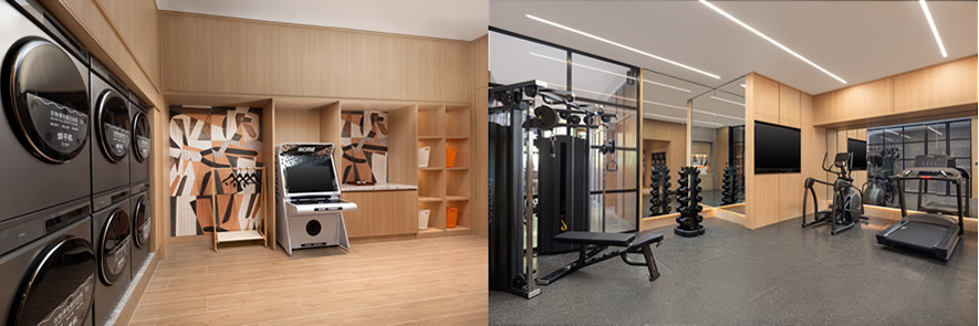 暢享“智慧”家居也是Atwell筑格酒店的重要特色之一。酒店配備全屋智能操控系統,支持語音控制與一鍵客服,賓客可輕松調節溫度與燈光,使用智能家電,并配備隨心調節高低的升降桌以滿足不同場景需求。浴室設有熱毛巾架,電視支持智能投屏,賓客可獲得更順暢的居停體驗。酒店還設有“洗躍”健身洗衣空間,配有座位、游戲機等設施,打造具備洗衣和健身功能的社交休閑區,讓入住體驗更加豐富自在。