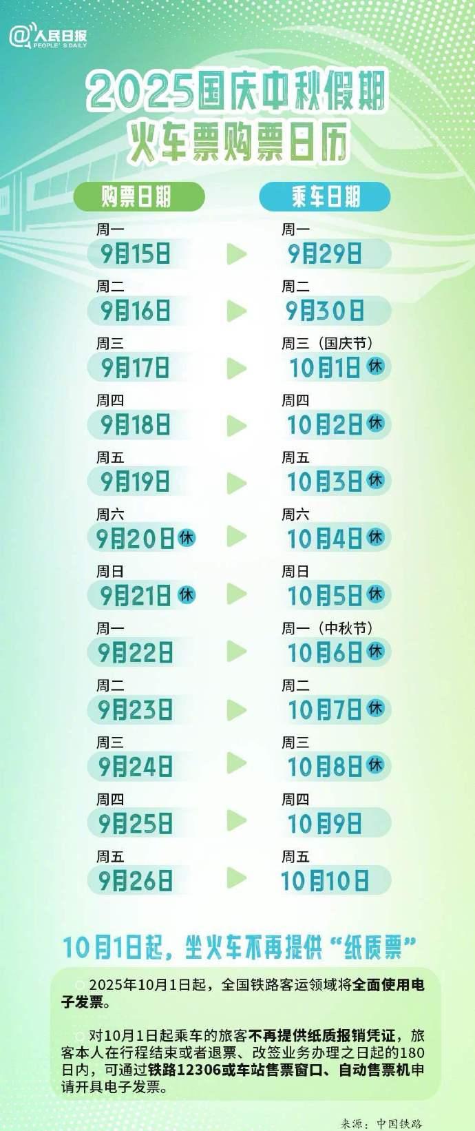 小貼士:根據鐵路部門規定,對10月1日起乘車的旅客,坐火車不再提供紙質報銷憑證。(來源:人民日報)