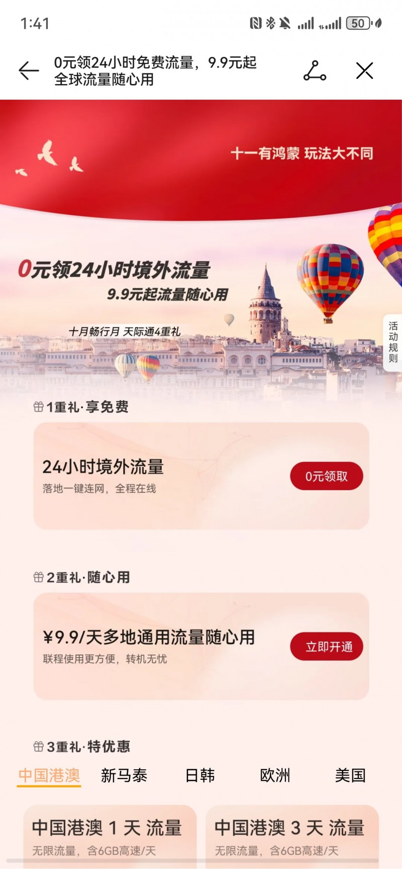 十一有鴻蒙!華為天際通多重禮遇解鎖全球上網暢行體驗