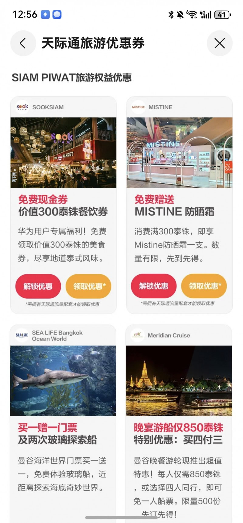 華為手機用戶開啟天際通流量后,可以在泰國、馬來西亞、越南、印尼免費領取Grab游客優惠禮包,憑Grab優惠禮包即可享受精選服務,包括機場接送、打車折扣、外賣餐飲、超市購物等出游場景,輕松暢游東南亞。還可領取Klook旅游權益優惠,無論您是在中國香港&澳門暢游看夜景,還是在日本觀賞和風之美,在韓國感受韓風潮流、越南邂逅燈火古鎮,即可享受景點購票全單95折優惠。在活動頁還可領取朗廷卓逸會全球酒店住宿禮遇及專屬優惠房價,共覆蓋全球超過30家知名酒店。