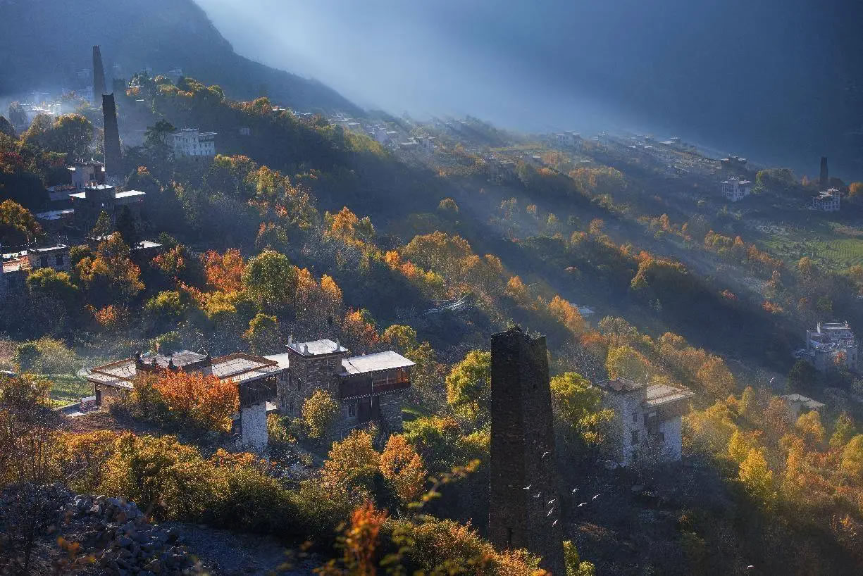 基卡依村坐落于墨爾多山省級自然保護區,立體海拔造就了“一山有四季”的獨特風光,時值深秋時節,彩林疊金,眾多攝影愛好者慕名而來。村內擁有8個主類、25個亞類的特色文旅資源,國家級非遺“藏族碉樓營造技藝”與省級非遺“丹巴女子成人禮”等文化遺產在此鮮活傳承,“丹巴梨花節”“嘉絨藏族風情節”等IP活動更是擦亮“人文名片”。