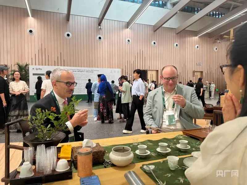 頒獎儀式現場,外賓品茗安吉白茶(央廣網記者 項楠 攝)