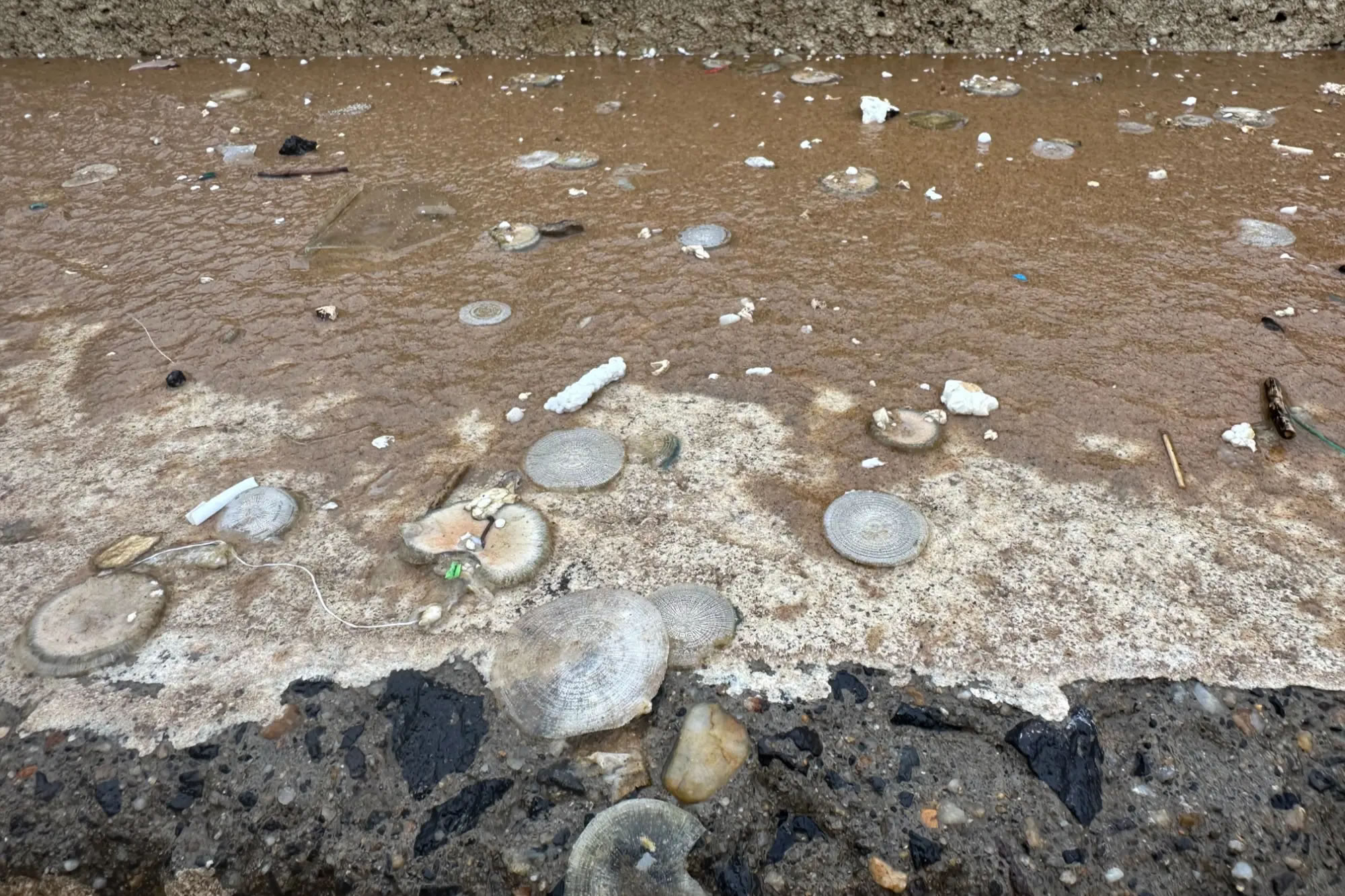 央廣網(wǎng)?10月23日消息(記者林韋瑋 付美斌 實(shí)習(xí)記者郭心怡)近日,?谑形骱0冻霈F(xiàn)大量形似“硬幣”的生物,這些生物“緊密鑲嵌”在沙灘上,遠(yuǎn)遠(yuǎn)望去,宛如無數(shù)枚銀色硬幣鋪灑在海岸線上。經(jīng)專家證實(shí),該生物為銀幣水母,具有一定弱毒性,接觸人體可能引發(fā)灼痛、紅斑或皮疹,游客在海邊游玩時應(yīng)避免主動觸碰。