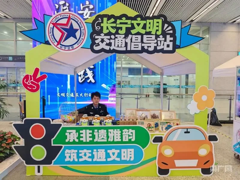 啟動儀式后,現場設置的多個互動體驗區吸引了大量市民駐足參與。文明交通游戲互動區融合了快樂大轉盤、抓娃娃機、交通標識猜謎等趣味項目;交通科技體驗區則展示了包括高科技警用設備、警用無人機、安全駕駛AR模擬、酒駕測試眼鏡在內的先進裝備,讓市民直觀感受科技賦能交通管理的成效。文明實踐快閃店集中呈現了虹橋機場、虹橋火車站等窗口單位在文明實踐中的創新成果。