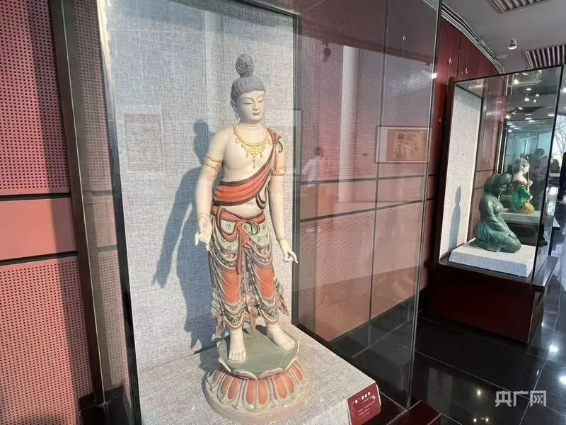 本次展覽精選30件敦煌彩塑、70件敦煌石粉彩繪作品(央廣網發 蔣好 攝)