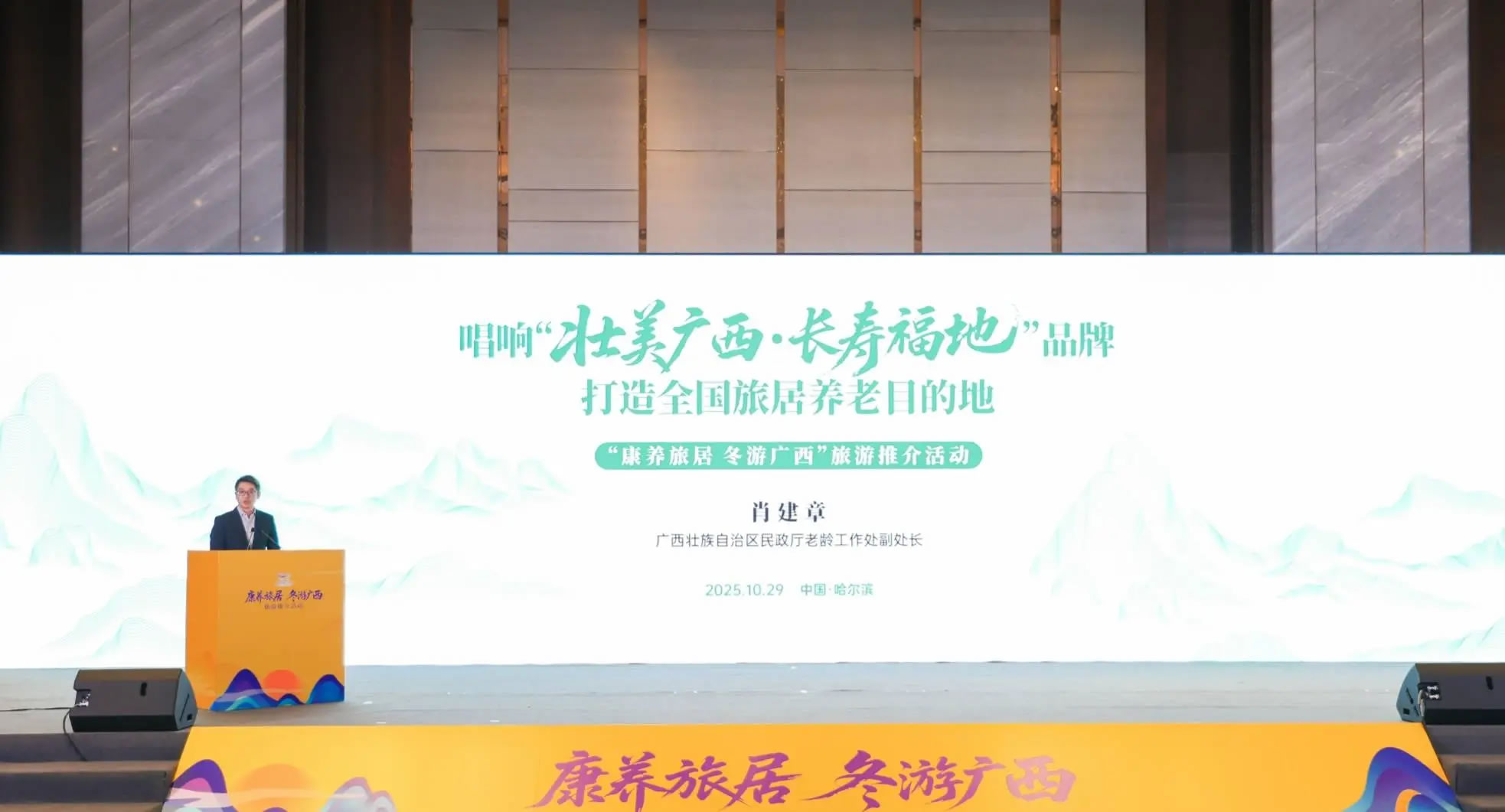 10月28日-29日,由廣西壯族自治區文化和旅游廳、民政廳、住房城鄉建設廳、農業農村廳、體育局、林業局共同主辦的“康養旅居 冬游廣西”旅游推介活動在哈爾濱市舉辦。