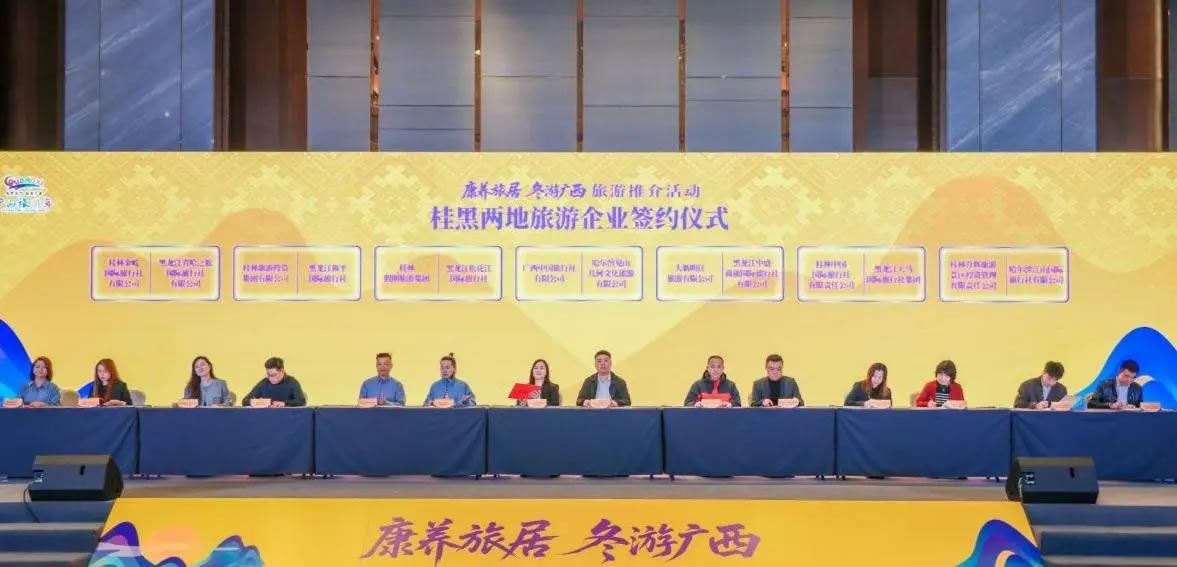 此次推介活動吸引了100多家桂黑兩地旅游企業進行深度交流,并開展桂黑兩地文旅企業產品對接會,達成多項合作。活動現場,7家廣西旅游企業與多家黑龍江省旅游企業成功簽約。