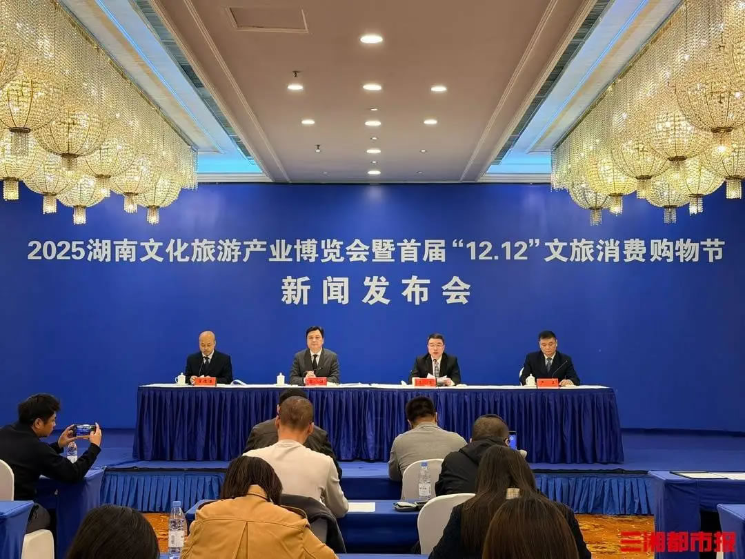 2025湖南文化旅游產業博覽會暨首屆“12·12”文旅消費購物節新聞發布會現場。曾冠霖 攝