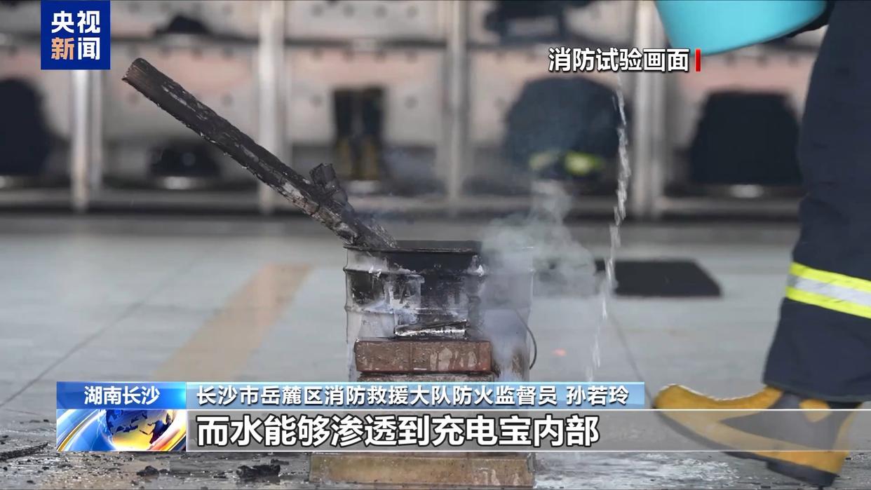 長沙市岳麓區(qū)消防救援大隊防火監(jiān)督員 孫若玲:干粉滅火器的滲透性和降溫效果比較差,在應對充電寶著火時效果并不理想,而水能夠滲透到充電寶內部,有效滅火并起到降溫作用。