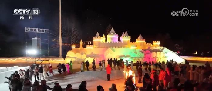夜幕下的漠河市北極村被燈光點亮,惟妙惟肖的雪雕有了不一樣的顏色。在小廣場上,天南地北的游客聚在一起攜手起舞,并用鏡頭記錄下浪漫的煙火。為滿足滑雪愛好者的需求,當地雪場今年首次開放夜滑,并新增了雪道。