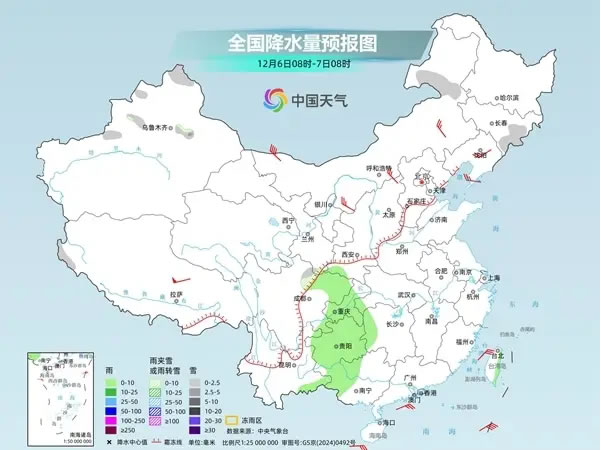 明天,新疆北疆北部和伊犁河谷、內蒙古東北部、吉林東部、西藏西部等地部分地區有小到中雪或雨夾雪。四川東部、重慶、貴州、云南東南部、廣西西部、湖南西部、臺灣島等地部分地區有小雨。
