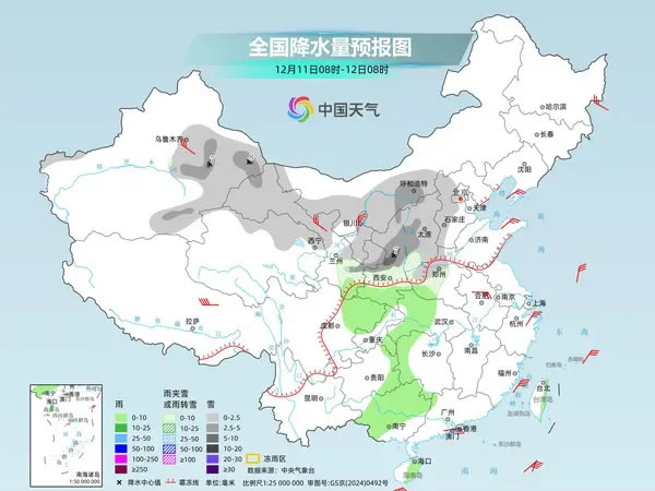 在這次寒潮過(guò)程中,由于水汽條件較好,我國(guó)將出現(xiàn)大范圍的雨雪天氣,這將是立冬以來(lái)最大規(guī)模的雨雪天氣。預(yù)計(jì)今起至13日,新疆、西北地區(qū)、華北、黃淮中北部、內(nèi)蒙古中部及東北地區(qū)中南部等地有小到中雪或雨夾雪,部分地區(qū)有大雪,新增積雪深度2至8厘米,局地可達(dá)10至15厘米;四川盆地、江漢、黃淮南部及其以南地區(qū)有小到中雨,局地大雨。