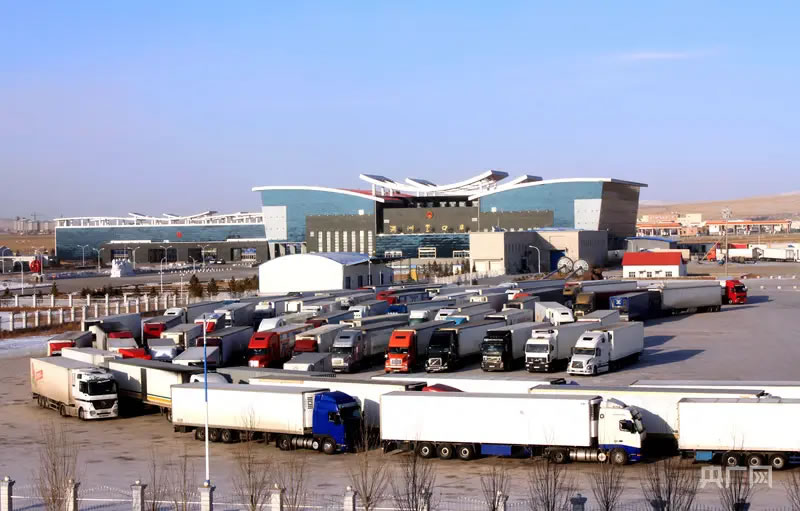滿洲里公路口岸貨車等待進出境(央廣網發 張鵬 攝)
