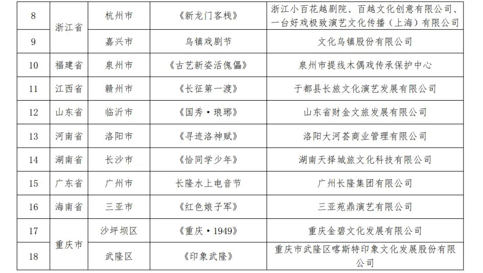 通知指出,各地文化和旅游行政部門要加強對入選項目的指導、支持與服務,加大宣傳推廣力度,引導本地旅游演藝項目準確定位,堅持內涵發展、可持續發展,依法演出經營,在豐富文旅產品供給、促進文旅消費升級、帶動區域發展中發揮更大作用。