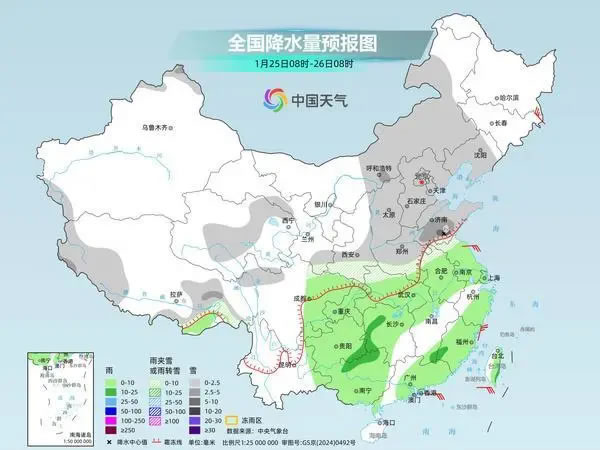 25至27日中東部多地將再迎降水,北方多地有明顯降雪,公眾需及時關注預警預報信息,合理安排出行計劃,注意交通安全。