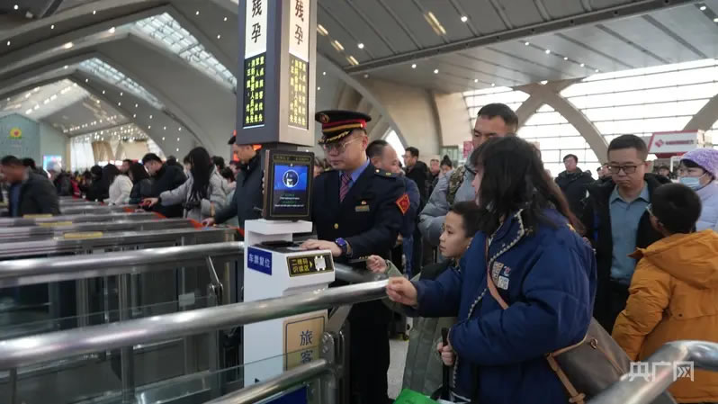 火車站工作人員正在引導乘客通過閘機(央廣網發 銀川火車站供圖)