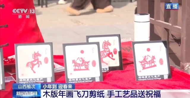 往前走就是各類手工藝品展臺,木版年畫、石板拓印都能現場體驗參與。一旁的剪紙藝人剪刀翻飛,紅紙在指尖流轉間,吉祥的福字與靈動的生肖便躍然紙上。