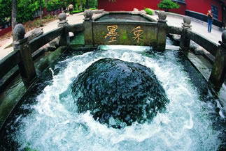 為濟南七十二名泉之一。位于百脈泉公園龍泉寺西南側,泉池呈方形,漢白玉雕砌,正常年流量0.3立米/秒。泉孔黝深,水色蒼蒼如墨而得名。泉眼直徑0.4米,泉水騰涌而出,水清透明,泉水黝深,故名“墨泉”。墨泉水出自深部奧陶紀石灰巖巖溶裂隙,盛水期泉流量0.5立方/秒,水柱沖出泉口,聲如雷鳴,雪濤飛濺。注入石渠,浩浩而下,有“一泉成河”的美譽。泉池前后刻“墨泉”二字,為大書法家舒同先生題寫。字體方正渾厚,“頗具魏晉飄逸之氣,含篆籀之義理,得分隸之謹嚴”,墨泉所在位置1966年-1980年曾是章丘縣委家屬住院,時任章丘縣委書記的舒同先生居此。