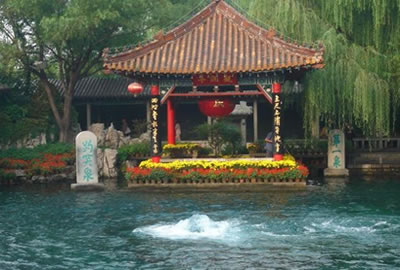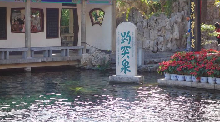 趵突泉又叫檻泉,是濼水的源頭,如今已有二千七百年的歷史。“趵突泉,三窟并發(fā),聲如隱雷”,“泉源上奮,水涌若輪”。泉水一年四季恒定在攝氏18度左右,嚴(yán)冬,水面上水氣裊裊,薄霧冥冥,一邊泉池波光粼粼,一邊是亭臺(tái)樓閣,金壁煌煌,構(gòu)成了一幅奇妙的人間仙境。歷代著名文學(xué)家、哲學(xué)家、詩人諸如曾鞏、蘇軾、張養(yǎng)浩、王守仁、蒲松齡等都有吟泉都忍不住在此留下美文以志之。